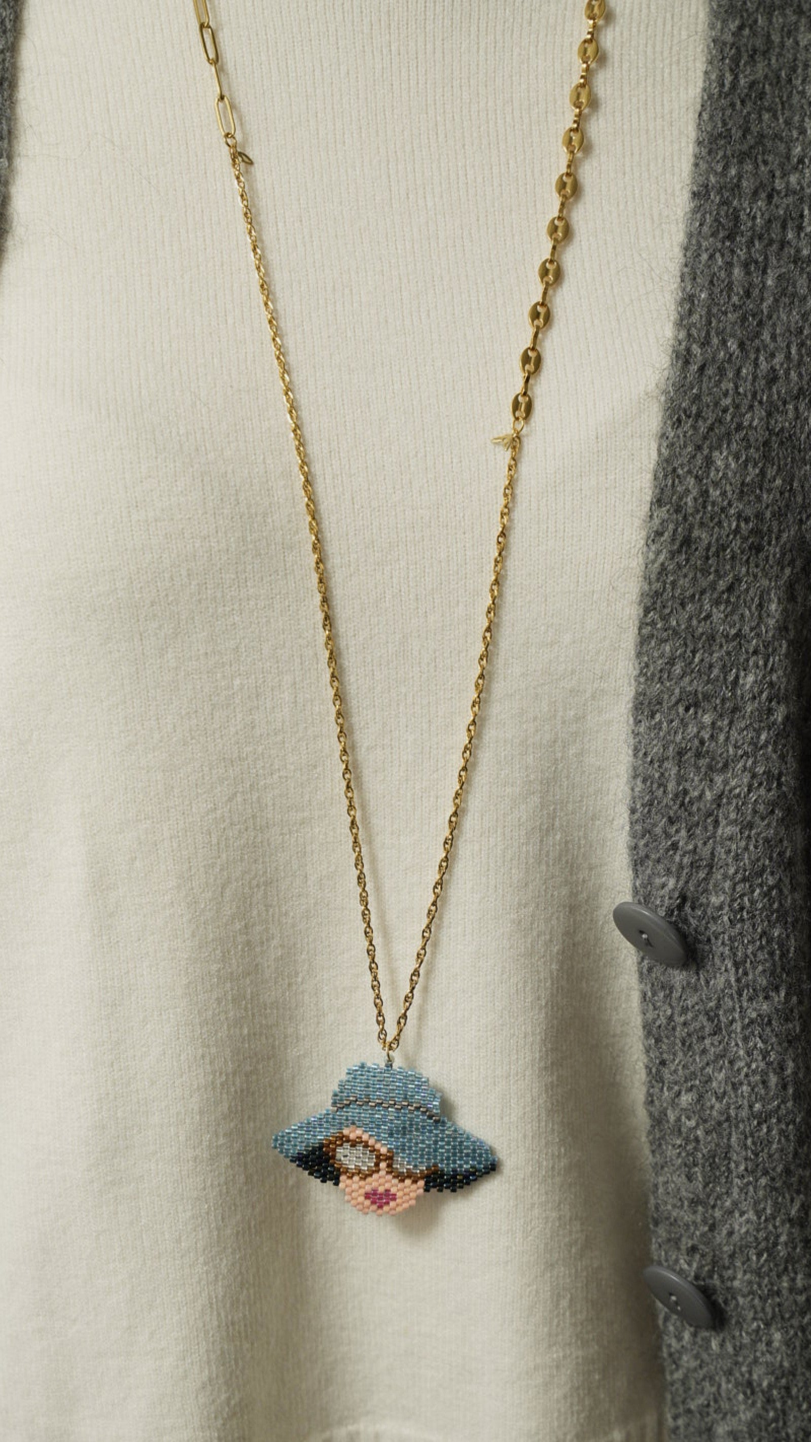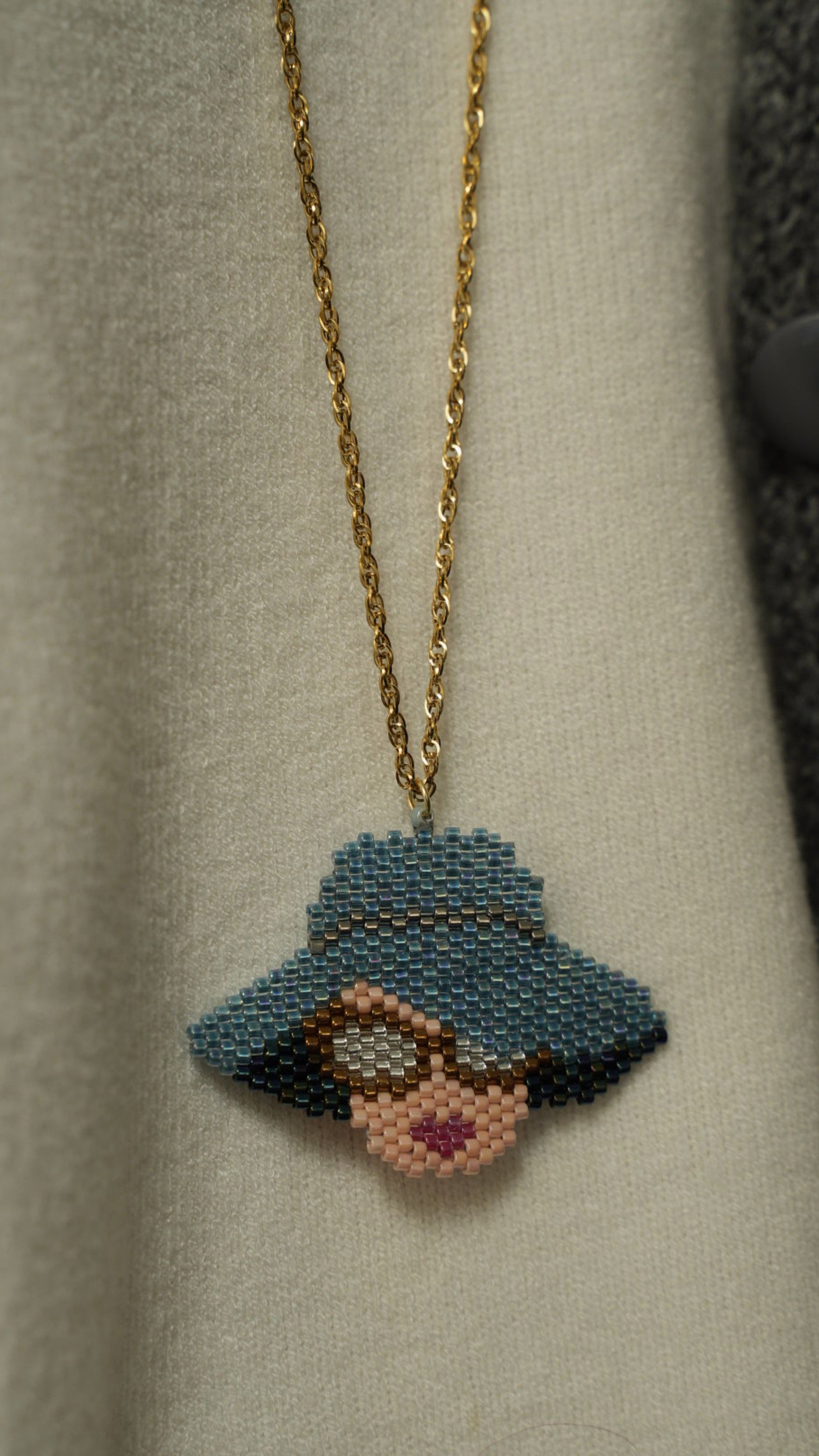 Collana con catena in acciaio inossidabile e charm realizzato con tecnica peyote.