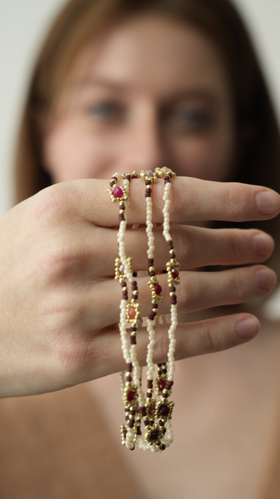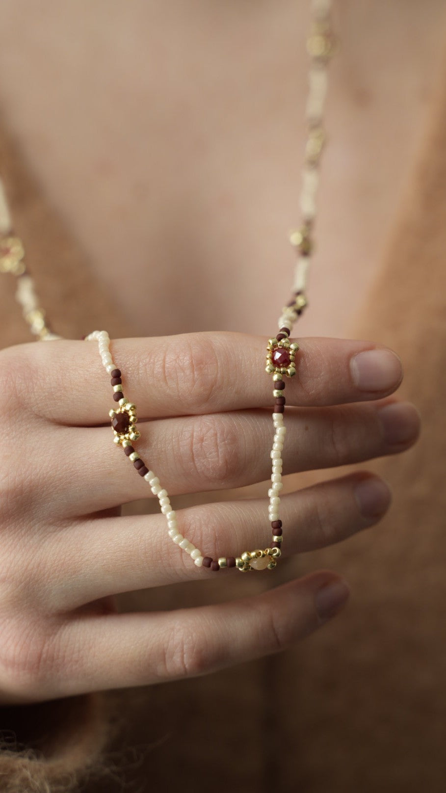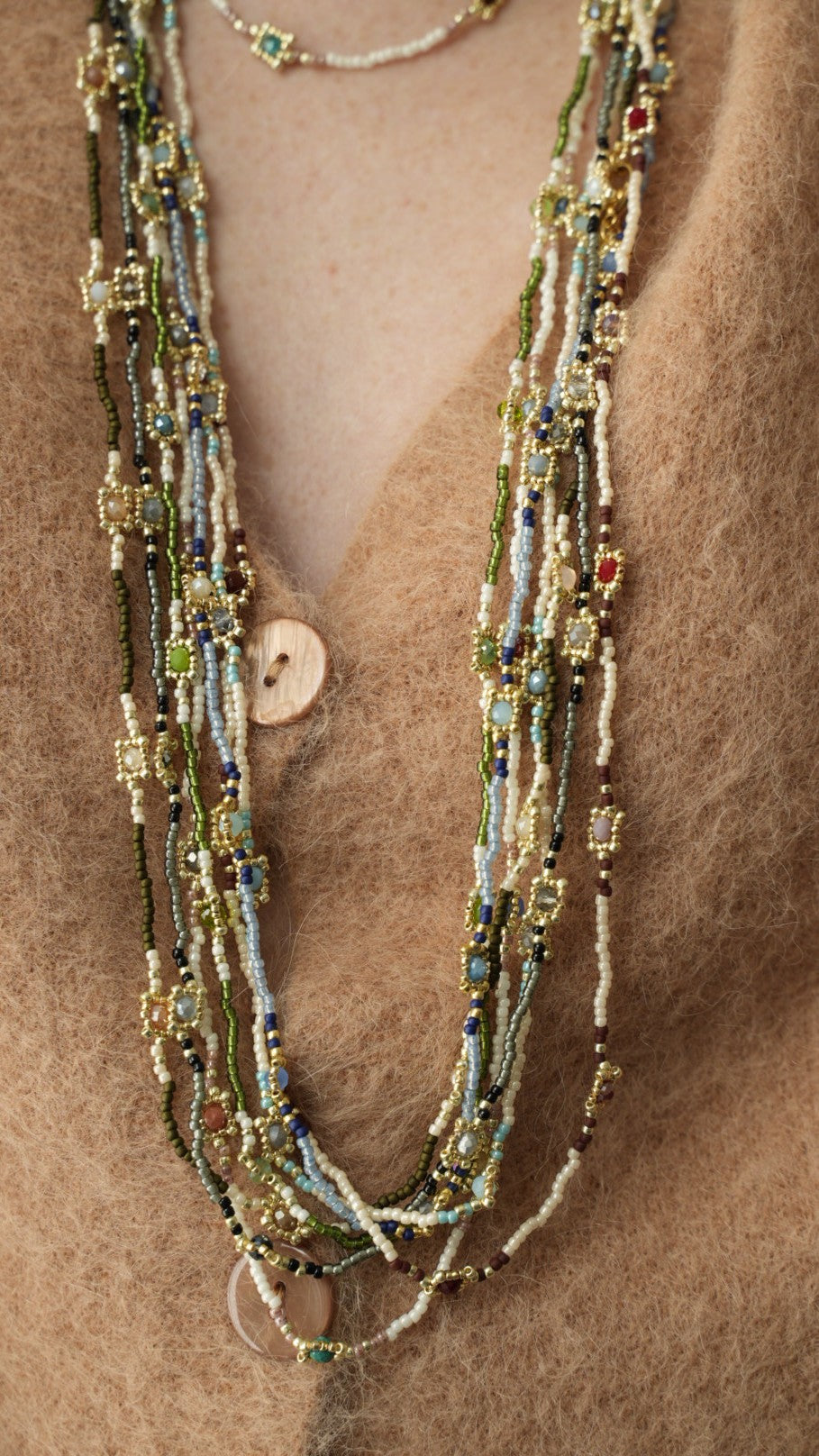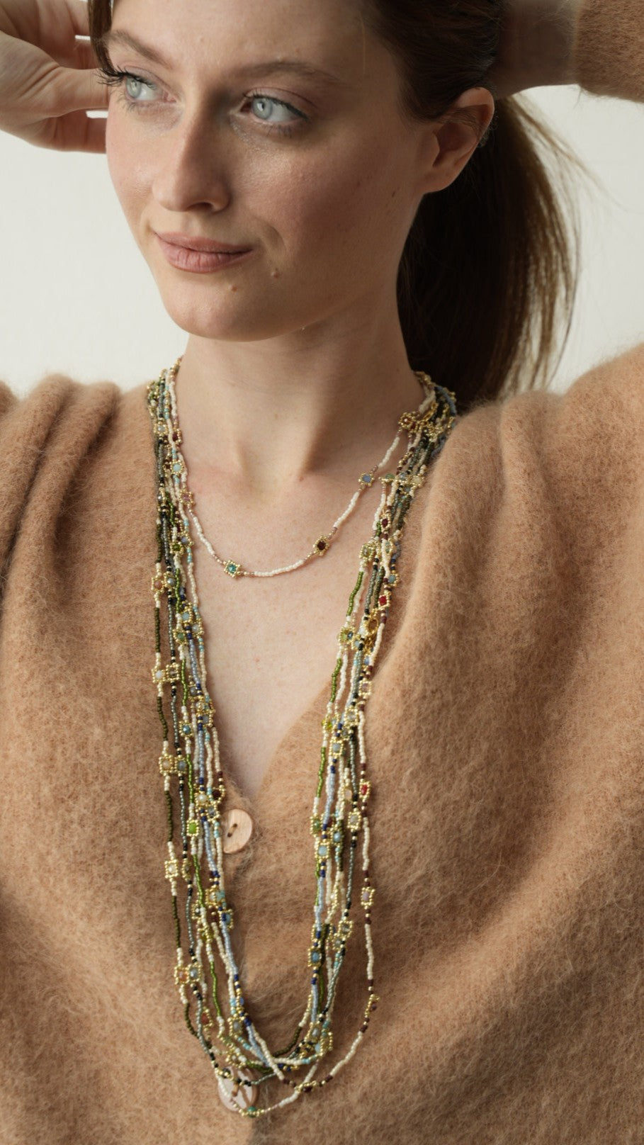 Collane realizzate interamente a mano co tecnica ago e filo.