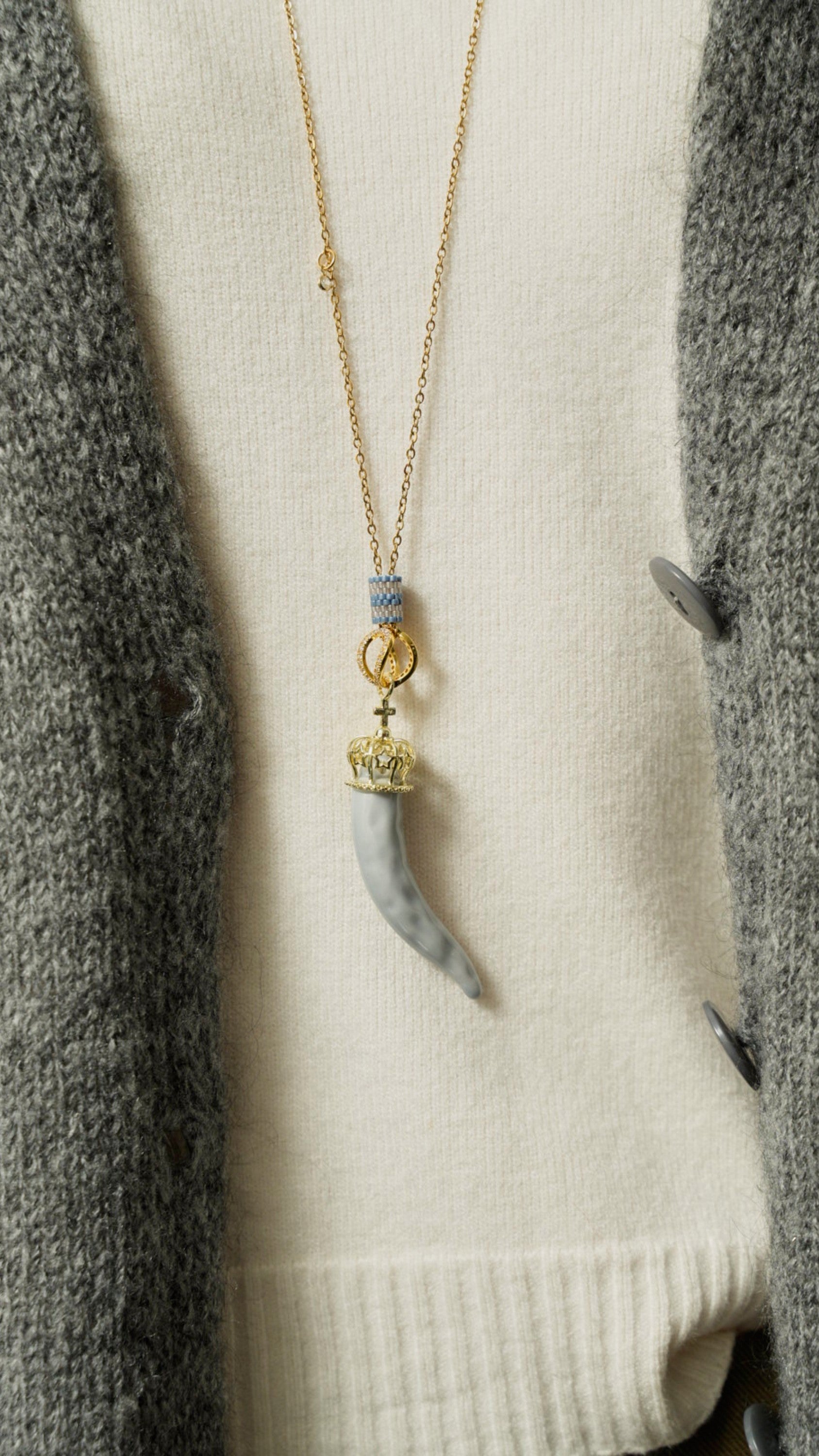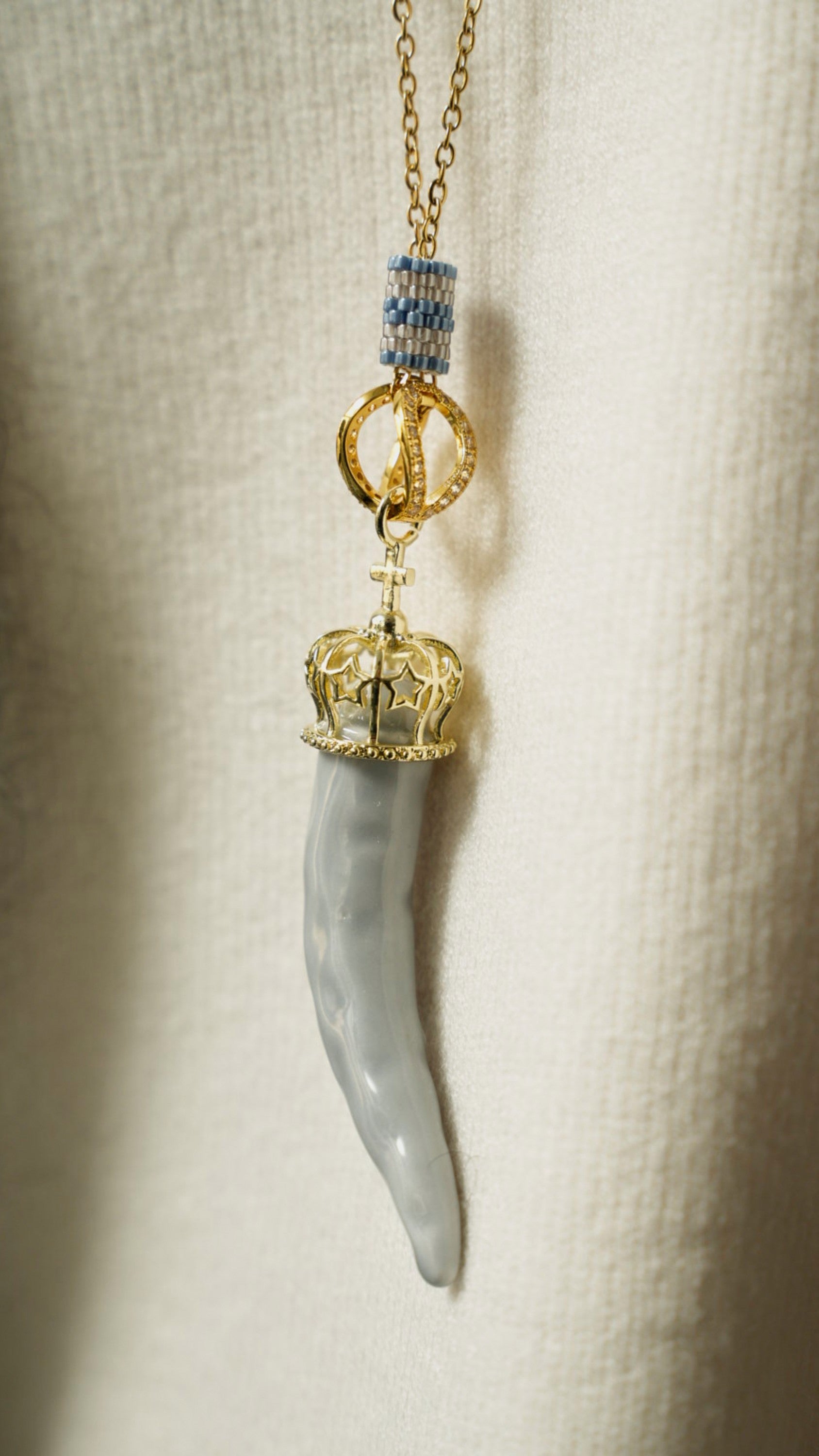 Collana realizzata a mano con catena in acciaio inossidabile, tubicino tecnica peyote e corno in ceramica.