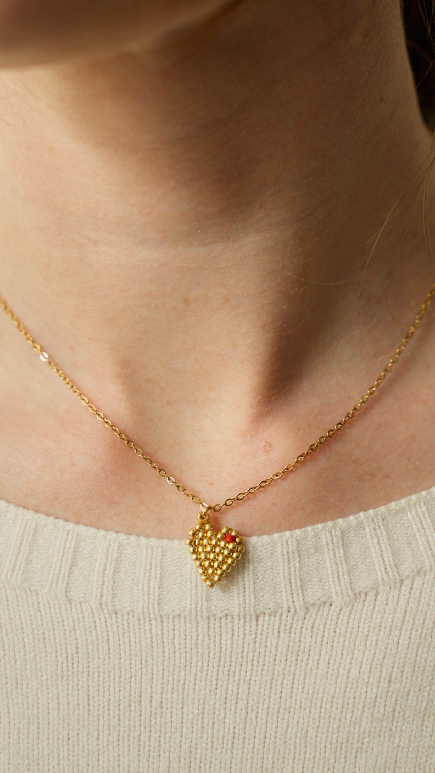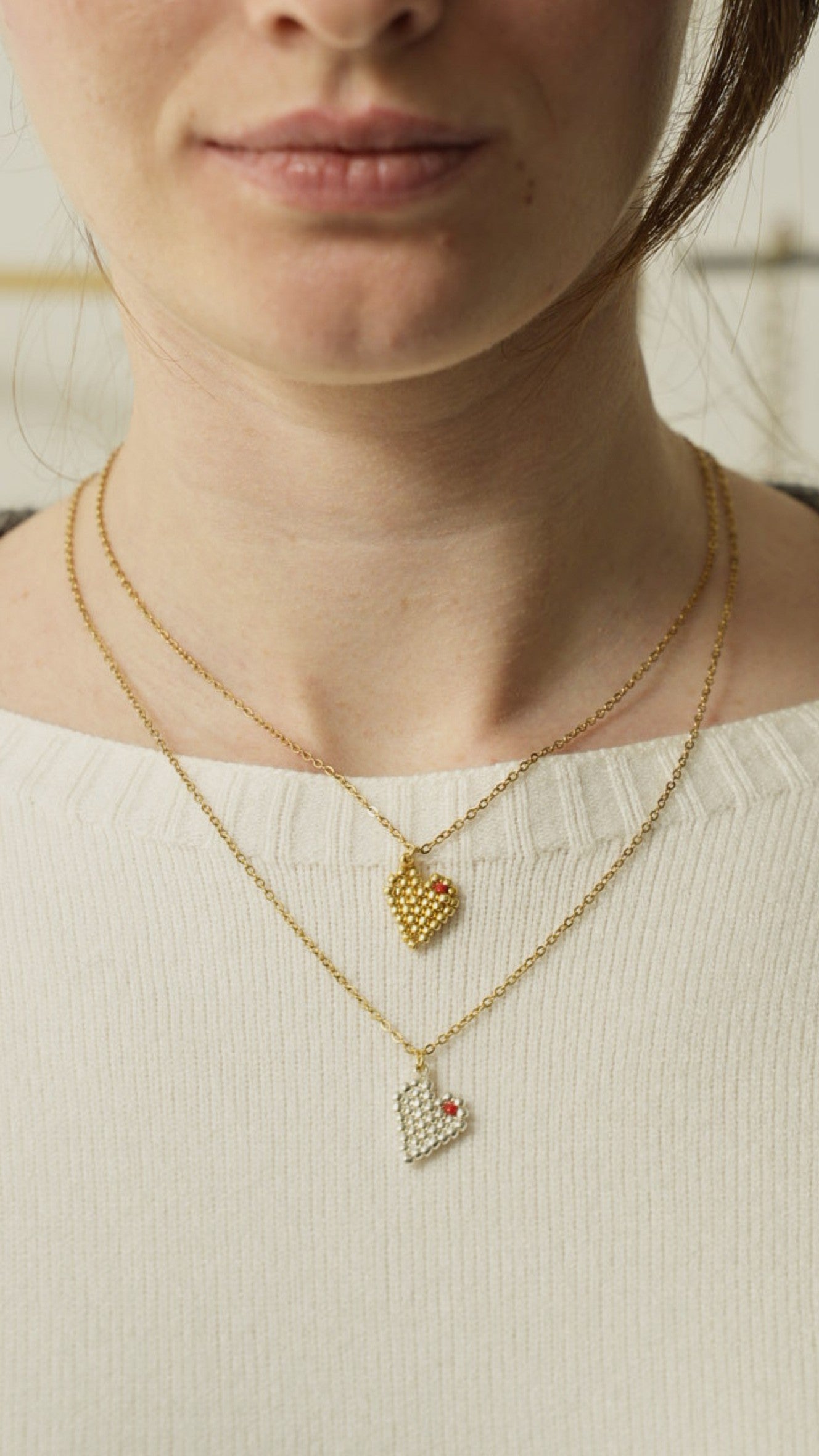 Girogola in acciaio inossidabile, o in alternativa catenella ad uncinetto con cuoricino realizzato con tecnica peyote.