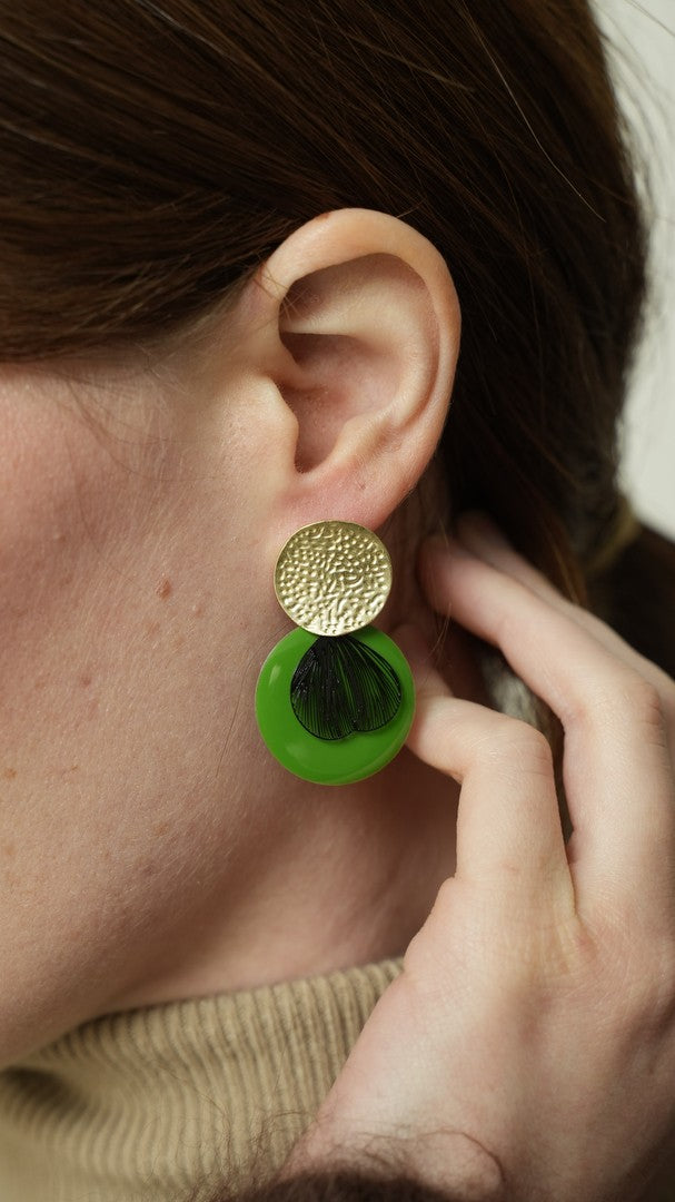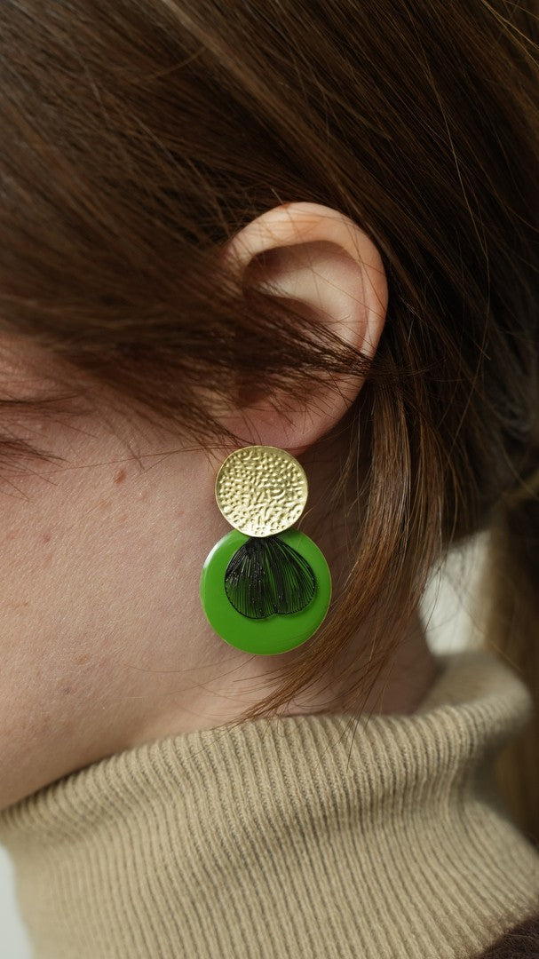 Orecchini realizzati a mano in ottone galvanizzato smaltato. Piccoli, pratici e colorati.