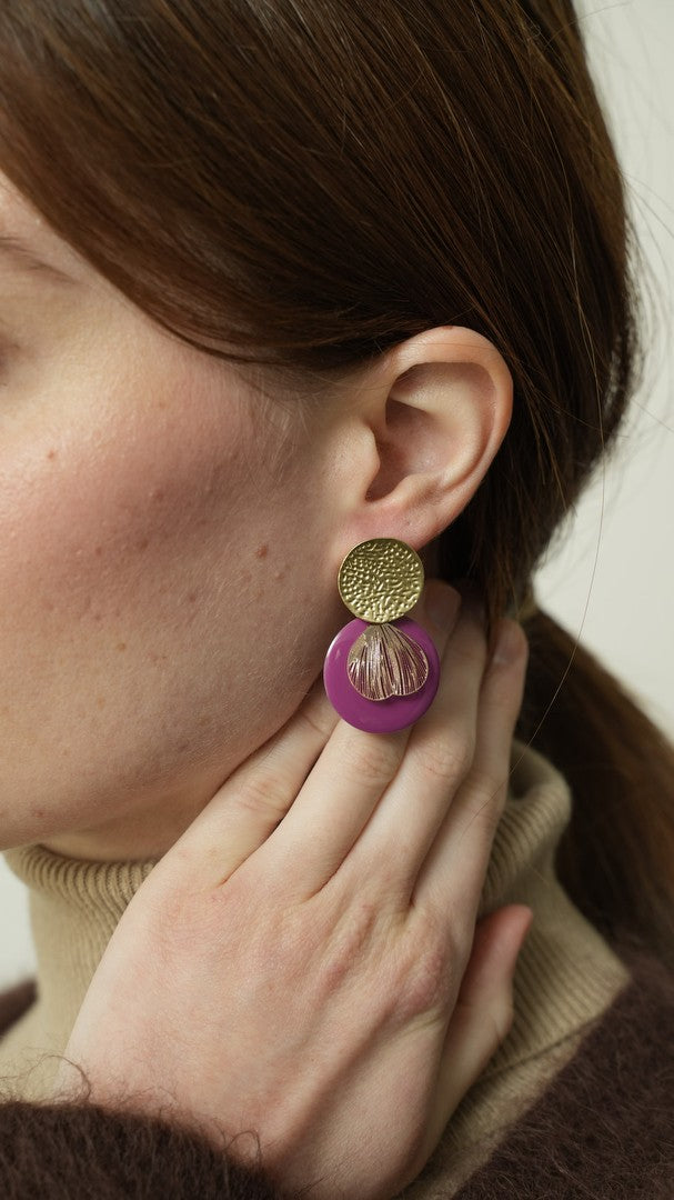 Orecchini realizzati a mano in ottone galvanizzato smaltato. Piccoli, pratici e colorati.