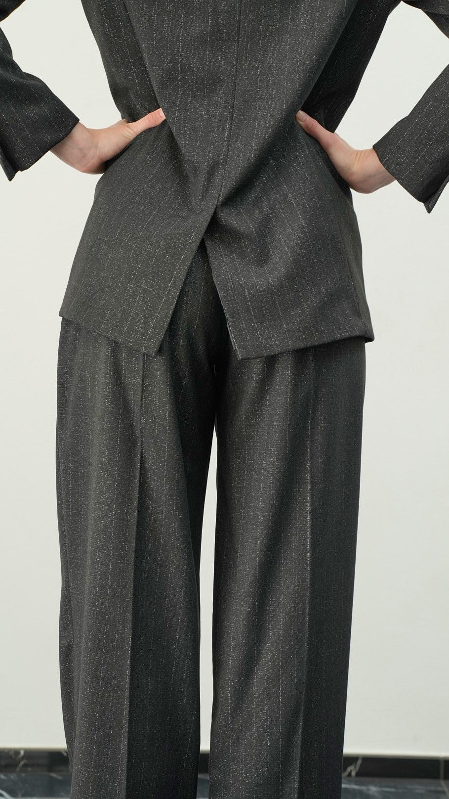 Giacca in 61% poliestere, 32% viscosa, 3% lurex, 2% poliammide e 2% elastan.