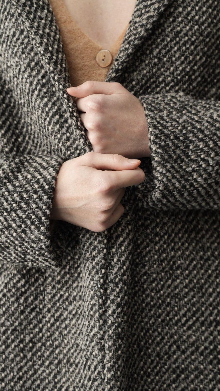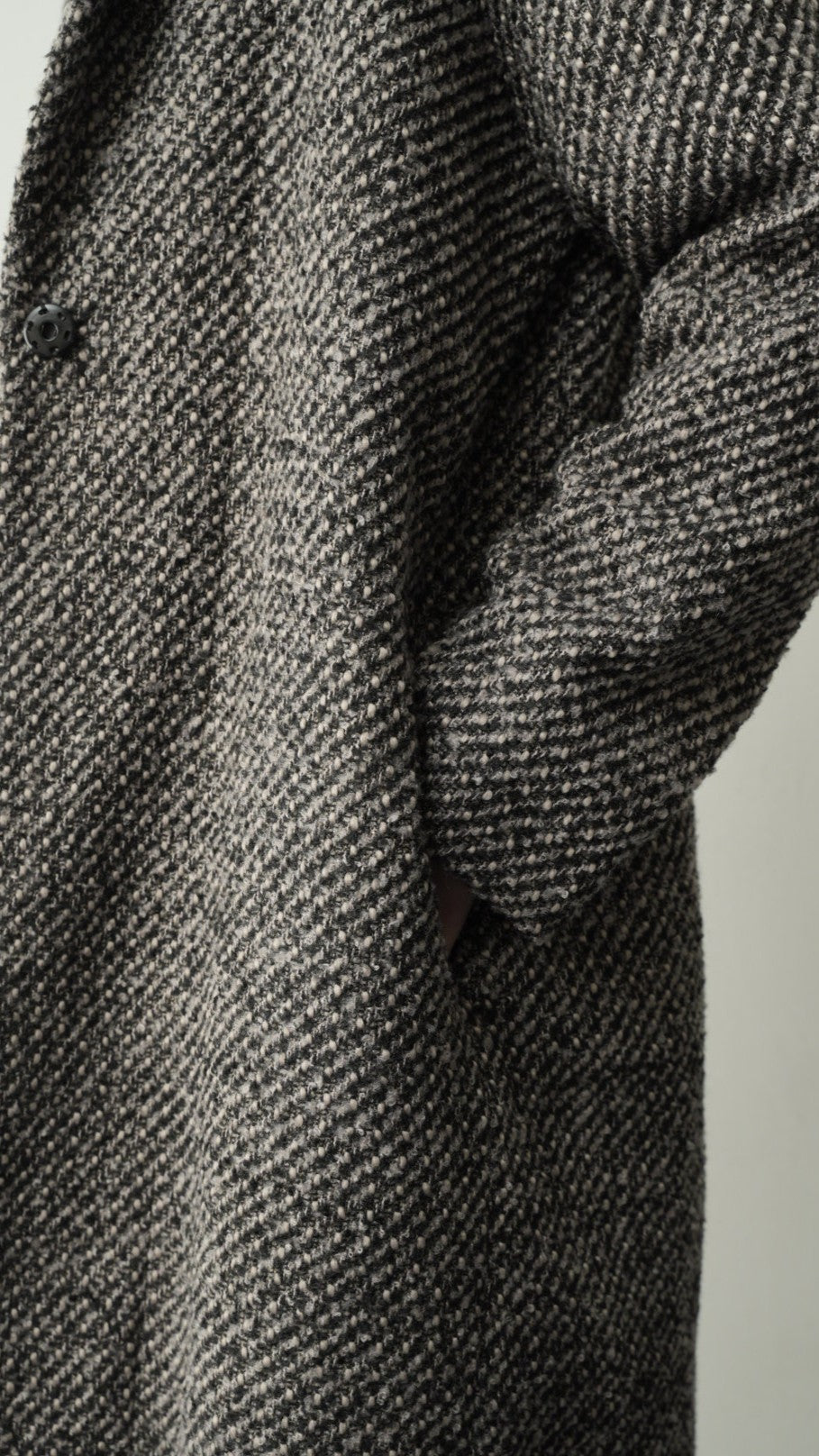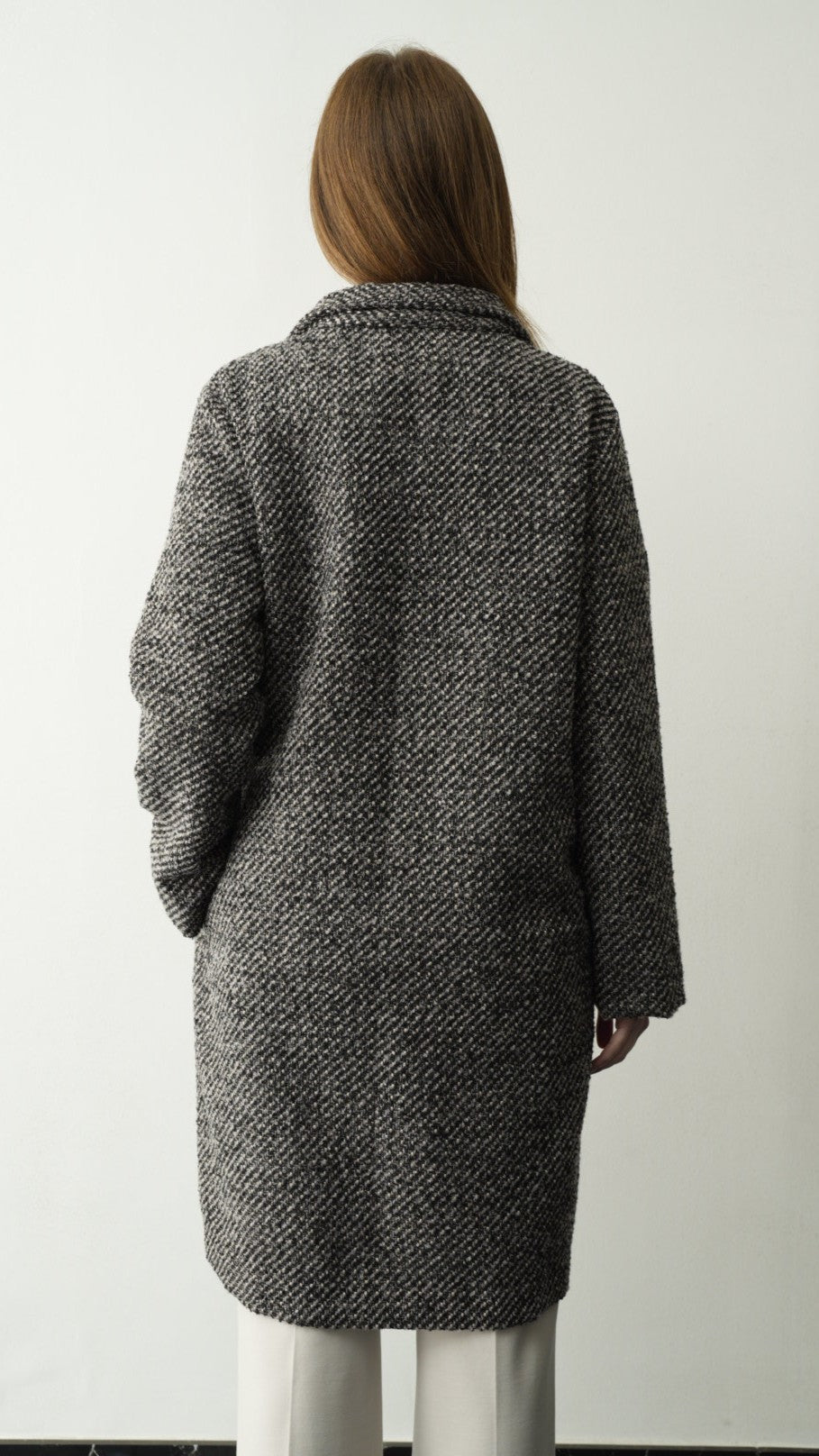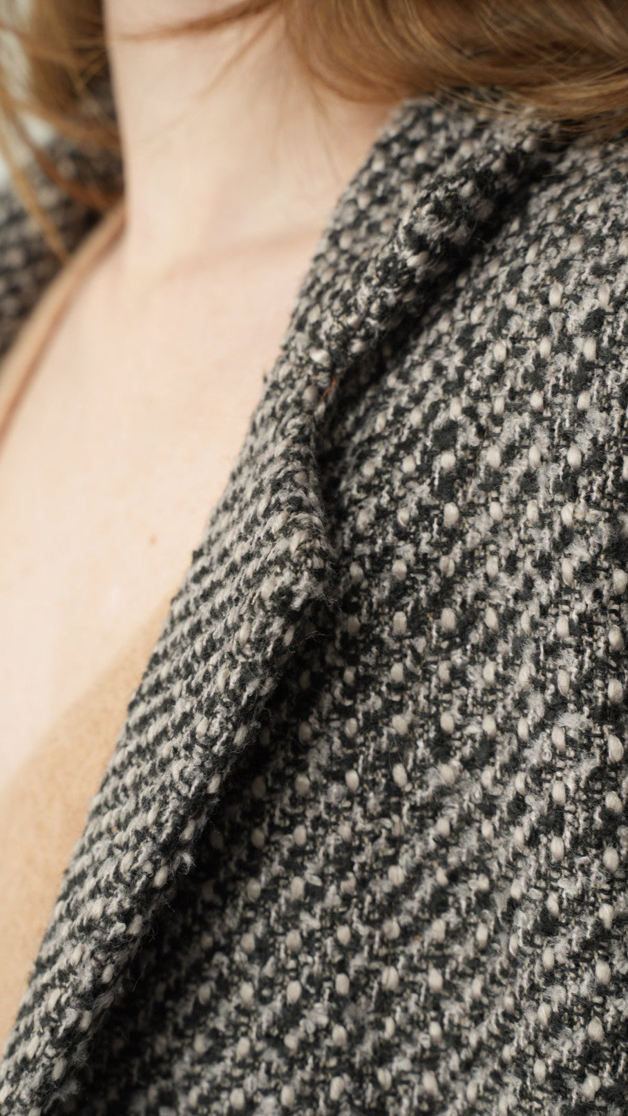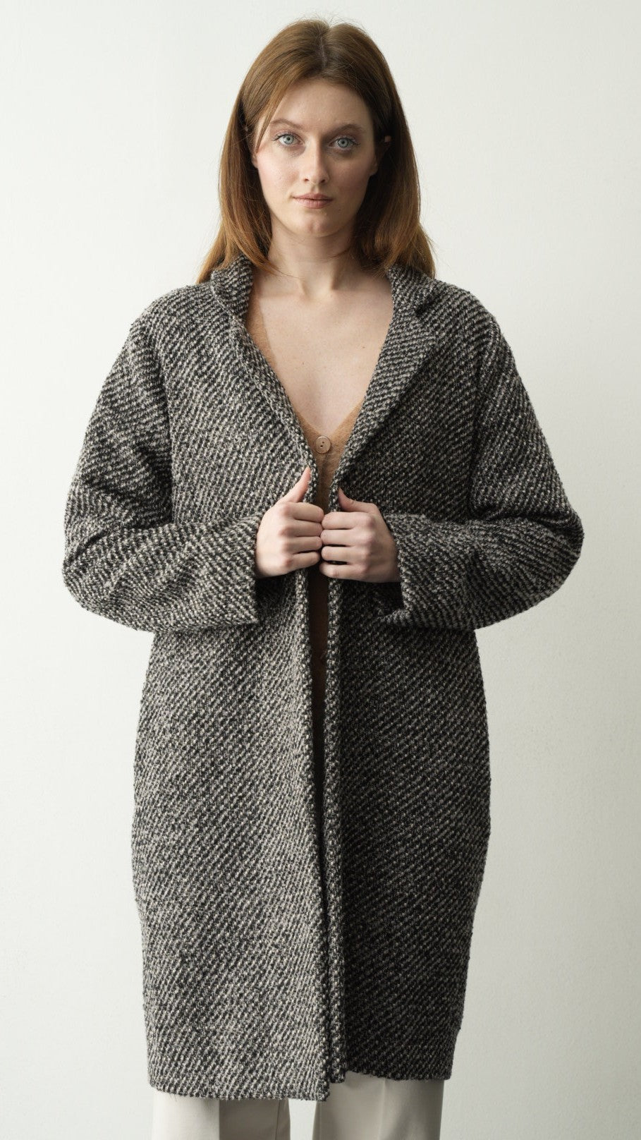 Cappotto cucito interamente a mano in 70% lana e 30% poliestere. Veste dalla taglia 40 alla 46.