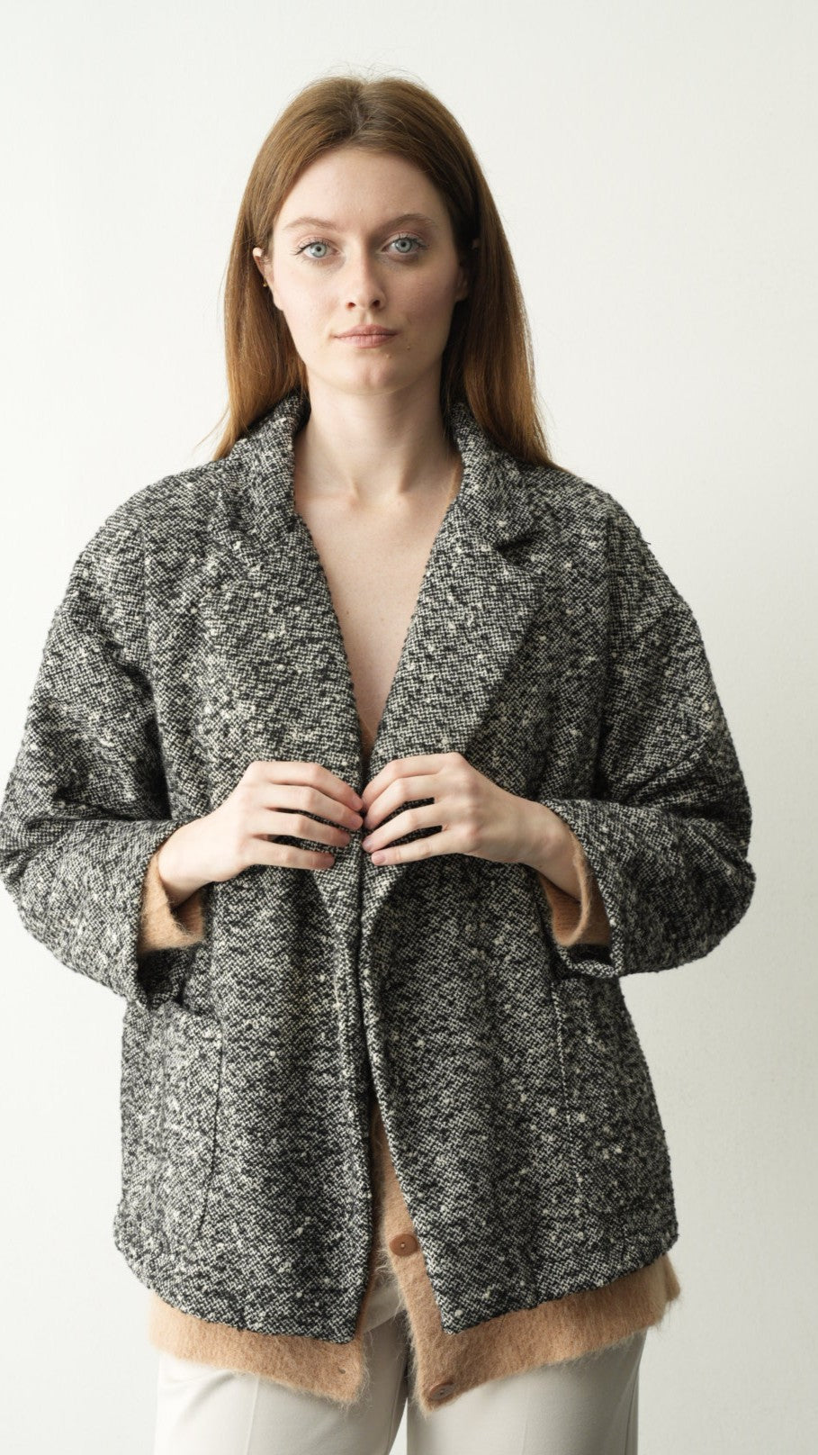 Giacca in 80% poliestere e 20% lana. Veste dalla taglia 40 alla taglia 46.
