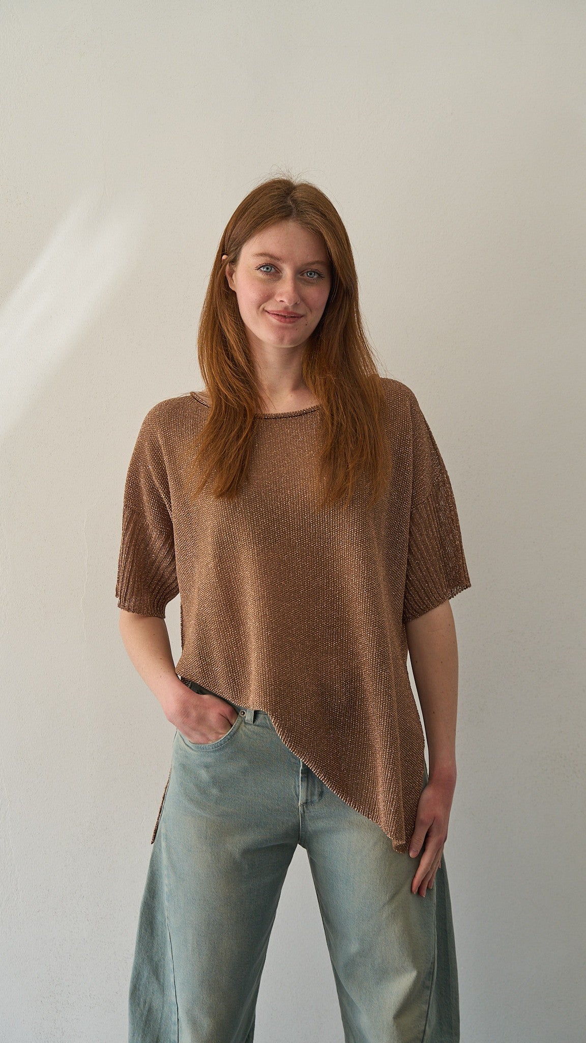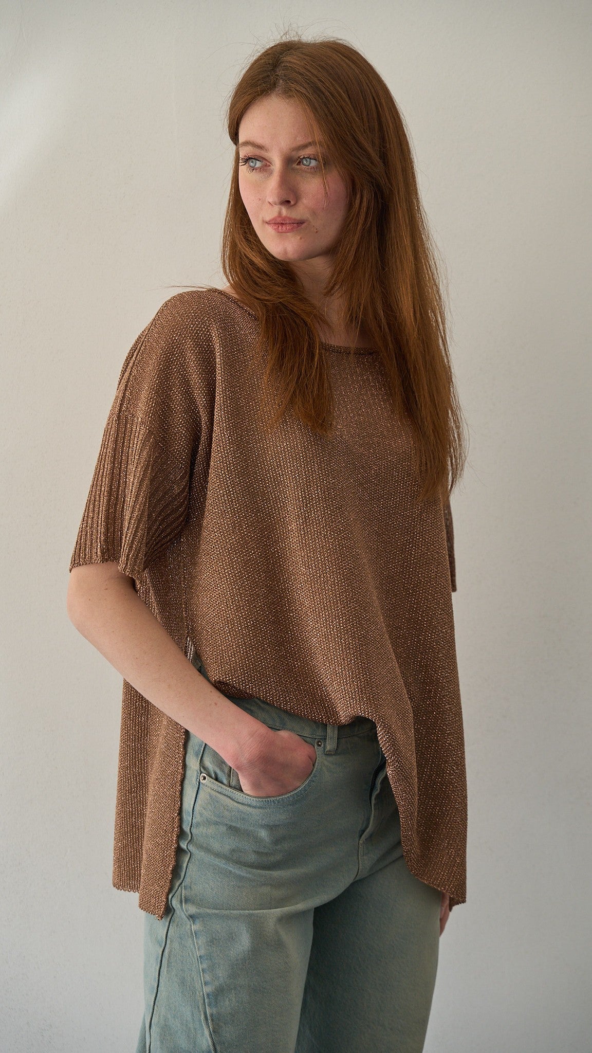 Kontatto - Blusa a barca punto riso ART.3M1557C Rame lurex