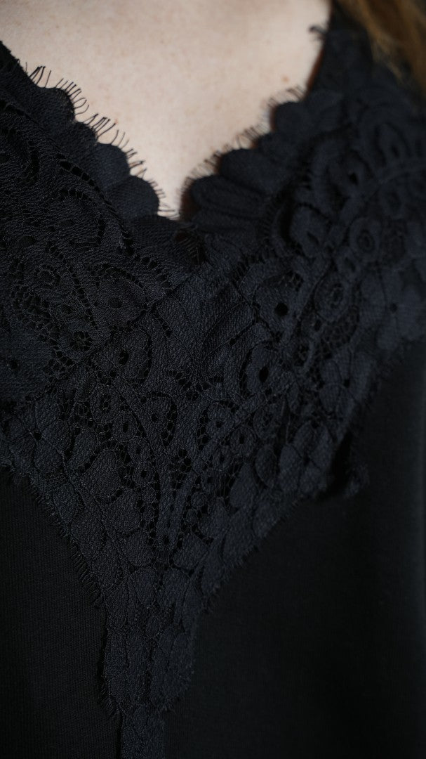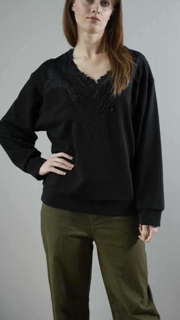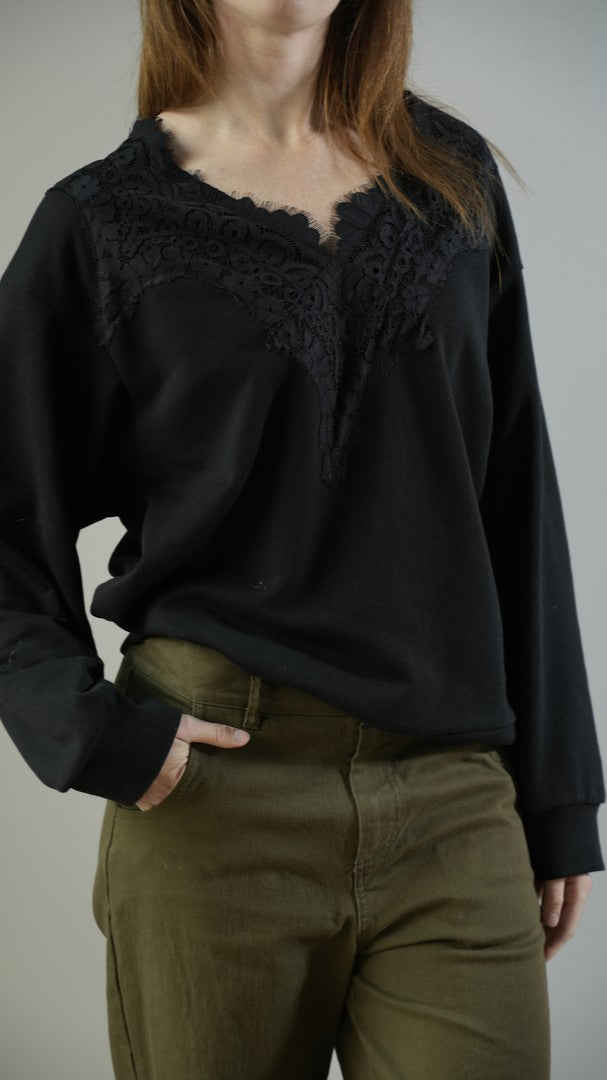 Tensione In - Felpa scollo a V con dettagli in pizzo - ART.37818