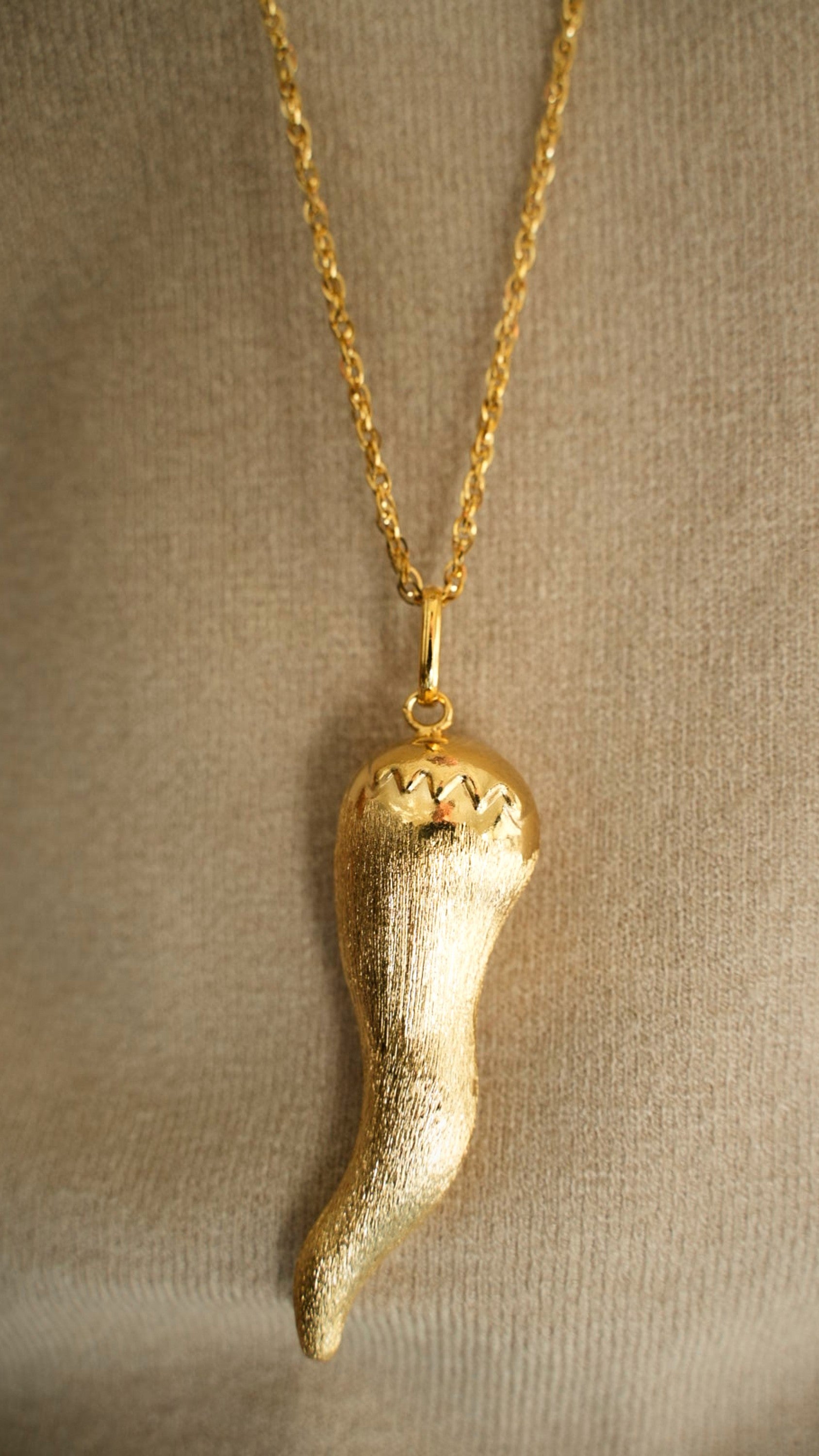 Collana artigianale dal design moderno con corno portafortuna, realizzata interamente in acciaio inossidabile.