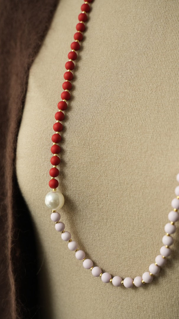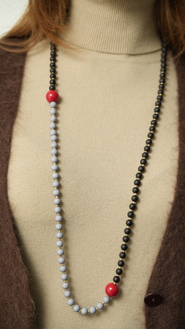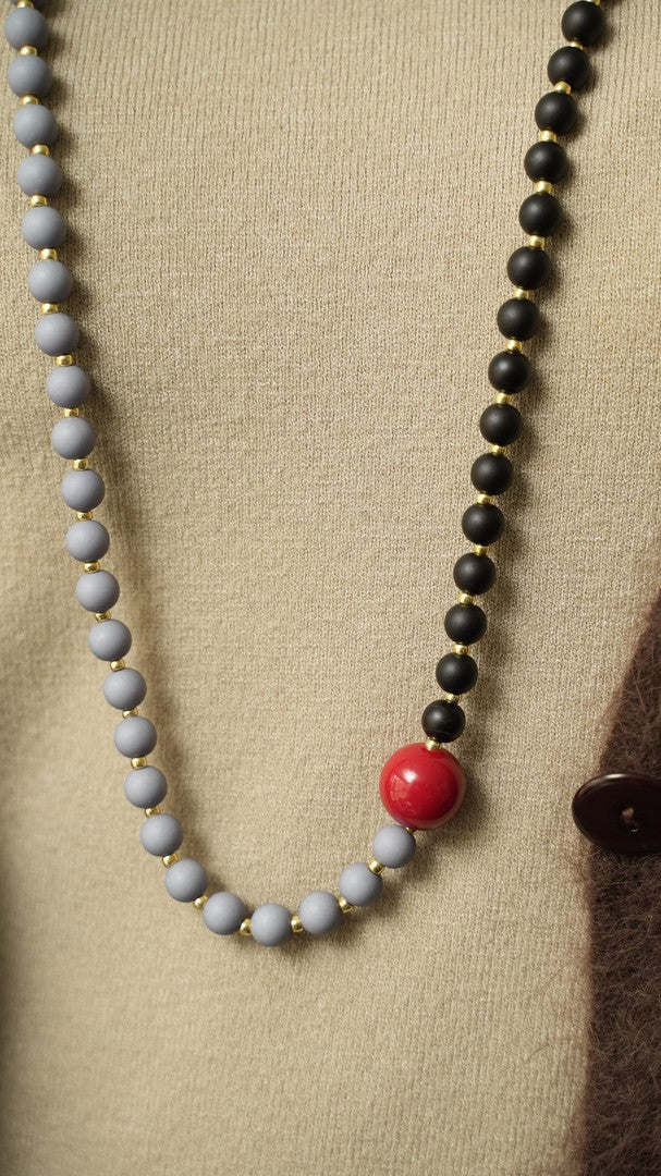 Collana realizzata a mano, con sfere di resina e perline Toho. Componenti in acciaio inossidabile.