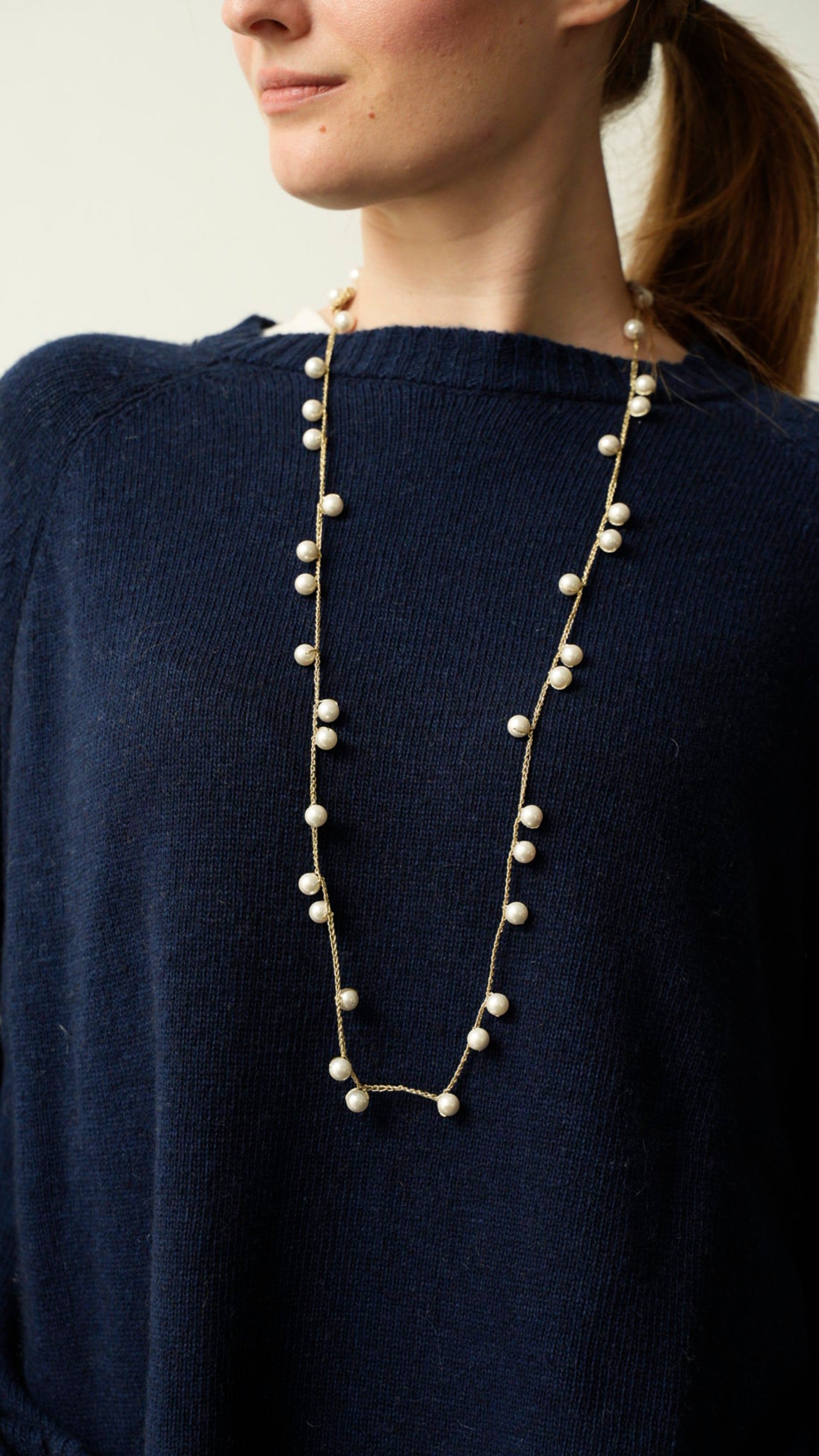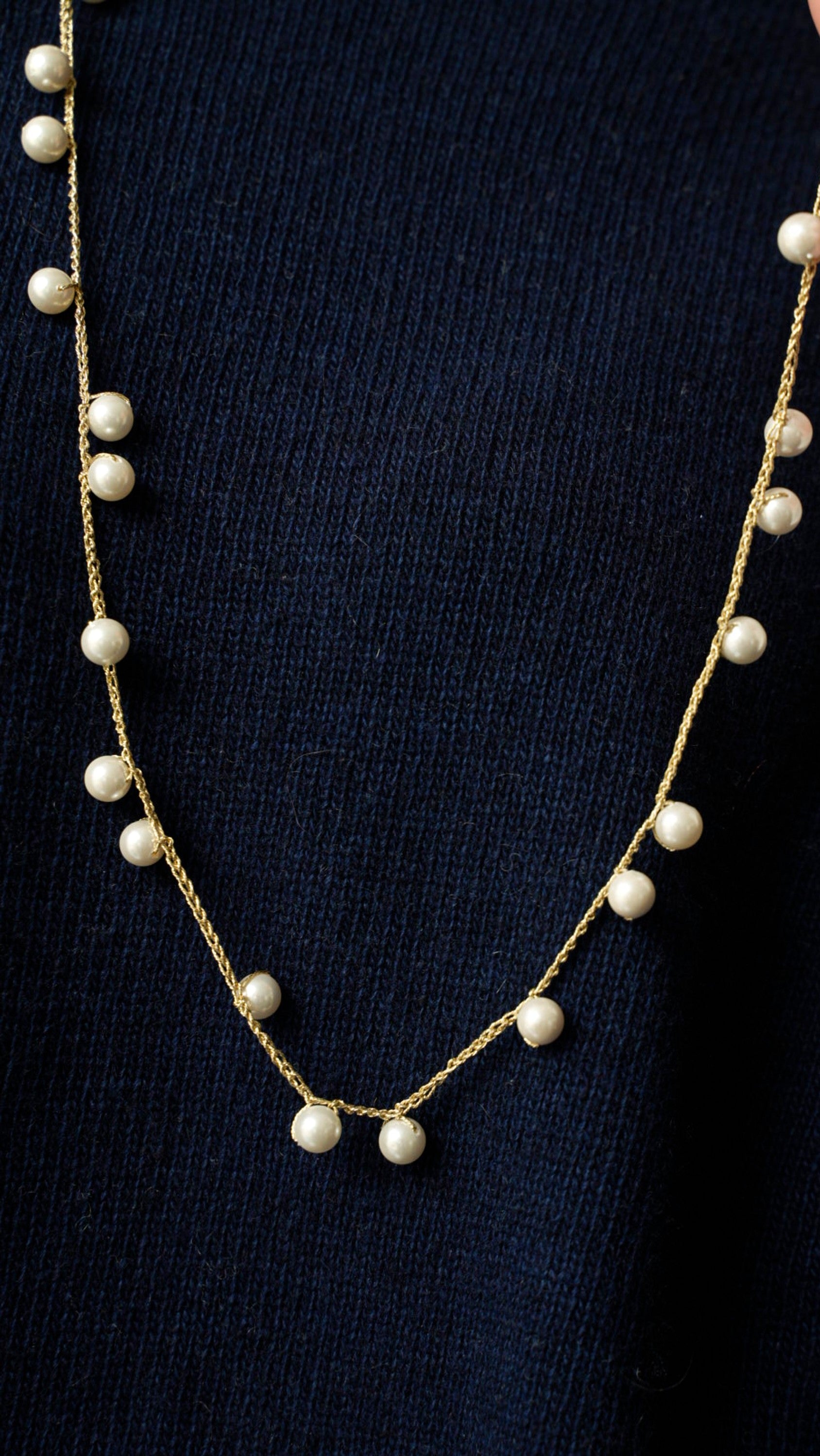 Collana realizzata interamente a mano con tecnica ad uncinetto, filo lurex e perle.