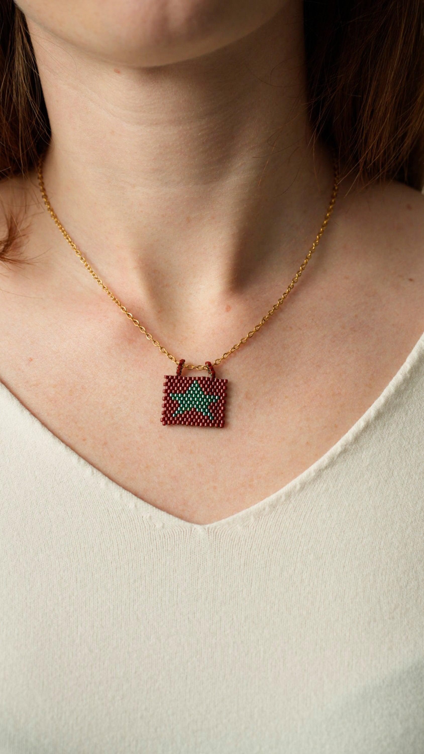 Girogola realizzato a mano con catena in acciaio e piastrina realizzata con tecnica peyote.
