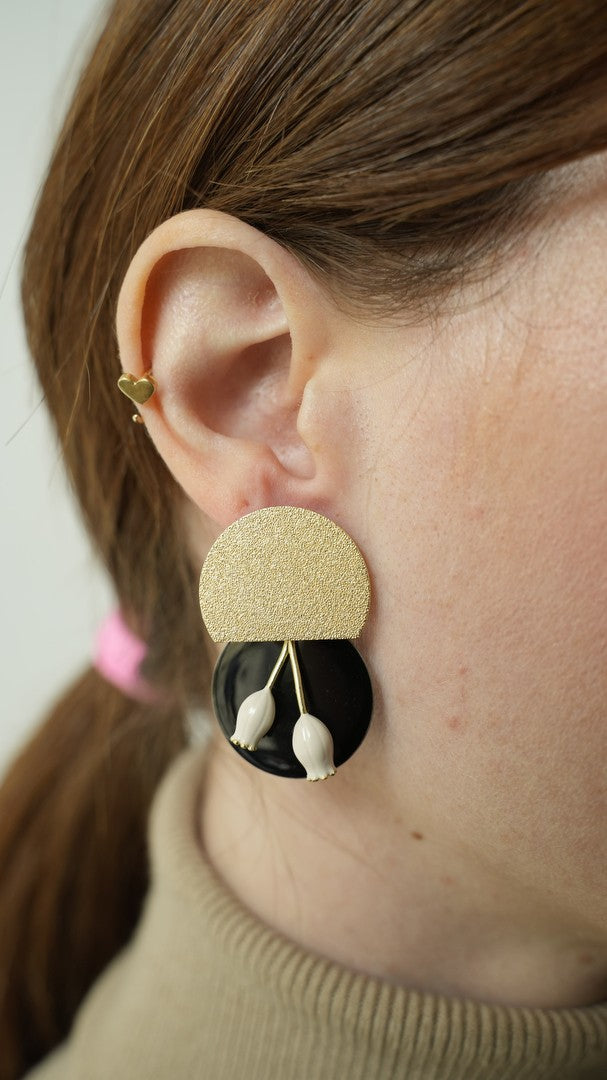 Orecchini realizzati a mano in ottone smaltato dal design semplice e colorato.