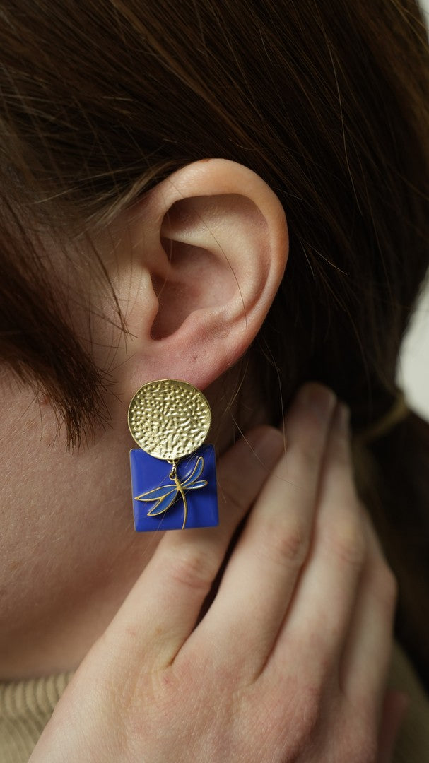 Orecchini realizzati a mano in ottone galvanizzato smaltato. Piccoli, pratici e colorati.