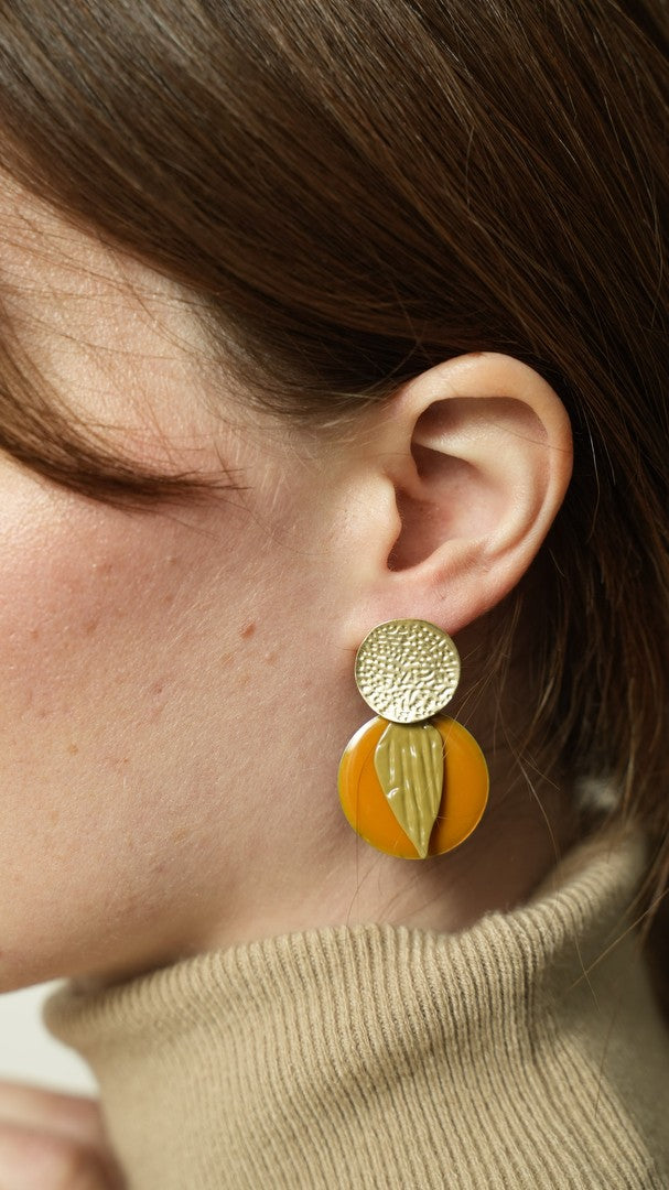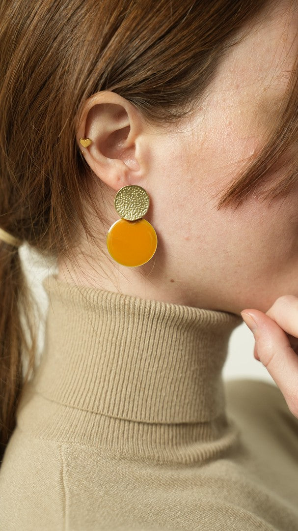 Orecchini realizzati a mano in ottone galvanizzato smaltato. Piccoli, pratici e colorati.